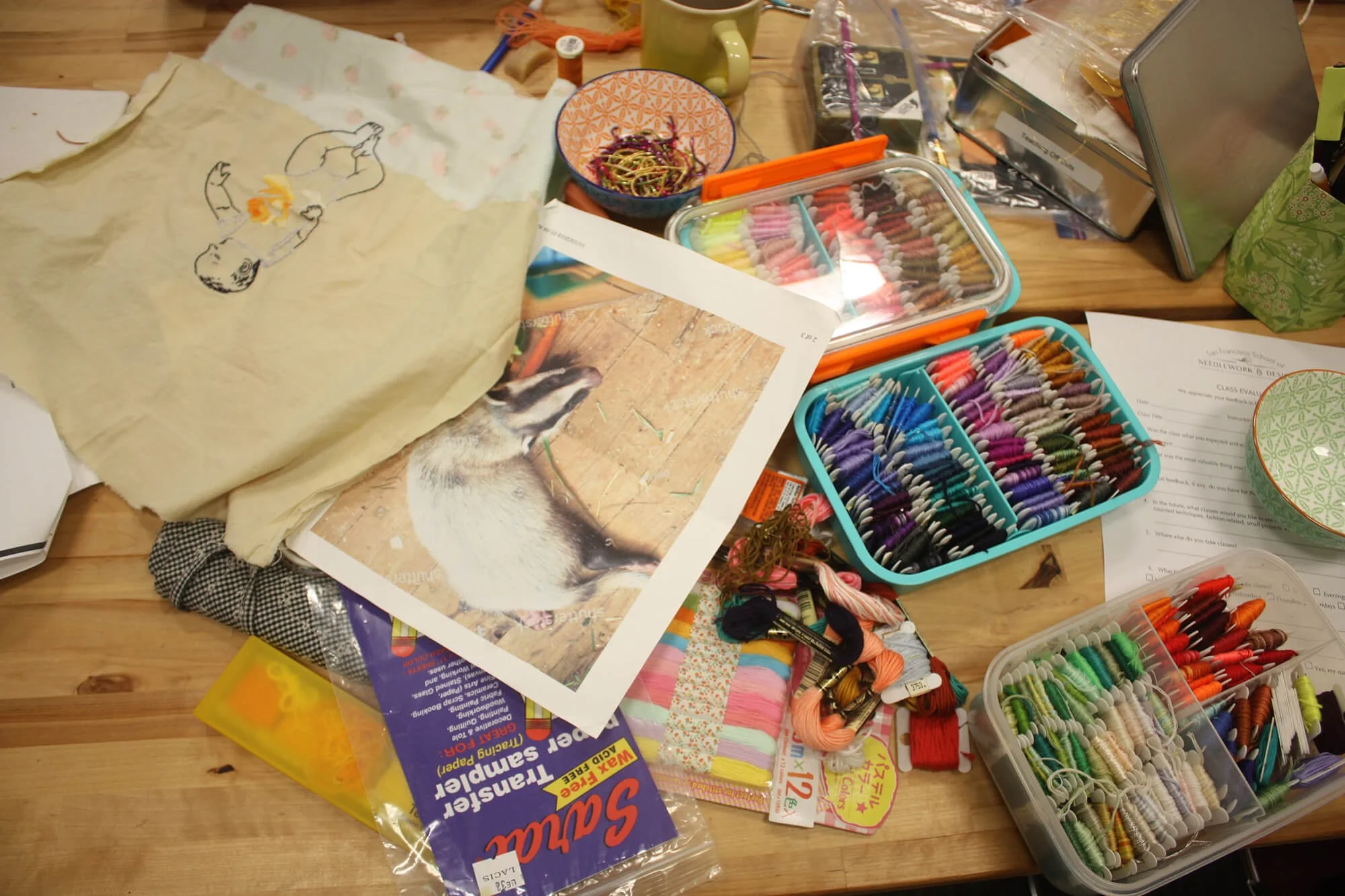 Slideshow photo credits: 1. No Borders, Only Colors, Caroline Barierra, freestyle embroidery: Collection SFSNAD 2. Kids & Art Exhibition at SFSNAD 3. The Lucy Barter Needlework Library 4. Anda Saylor, CSP Metalwork Level 1 in progress 5. CSP Goldwork by Nancy Mahoney 6. Enjoying a tutorial from Lucy Barter 7. Detail, Swedish Sampler: Collection of SFSNAD 6. Gathering Thread Shop at SFSNAD 7. Detail, Outside In by Devi Vallabhaneni: exhibition at Hanging Thread Gallery